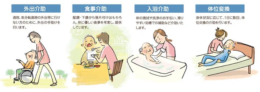 介護を必要とされる方が、ご自宅で快適にお過ごしいただけるように介護職員がご自宅へとお伺いし、